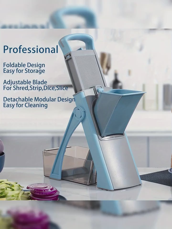 Comnox - Multifunctionele Groentesnijder & Rasp - Inklapbaar - Instelbare Dikte - RVS Mes - Handmatige Groente- en Fruitsnijmachine - Compact en Efficiënt Keukengereedschap - Blauw