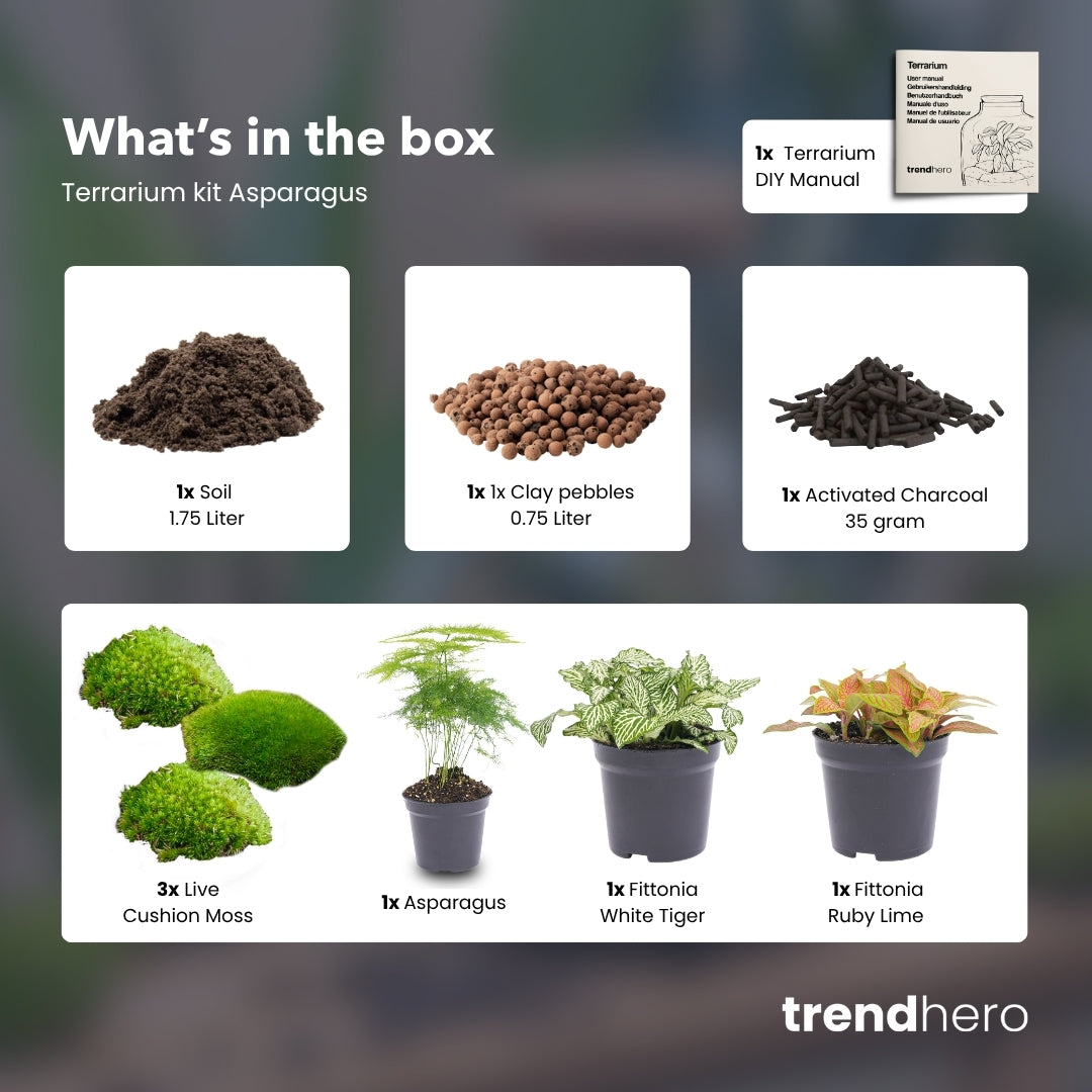 Asparagus - Plant Terrarium Refill & Starter kit - 3 terrarium plants - DIY
