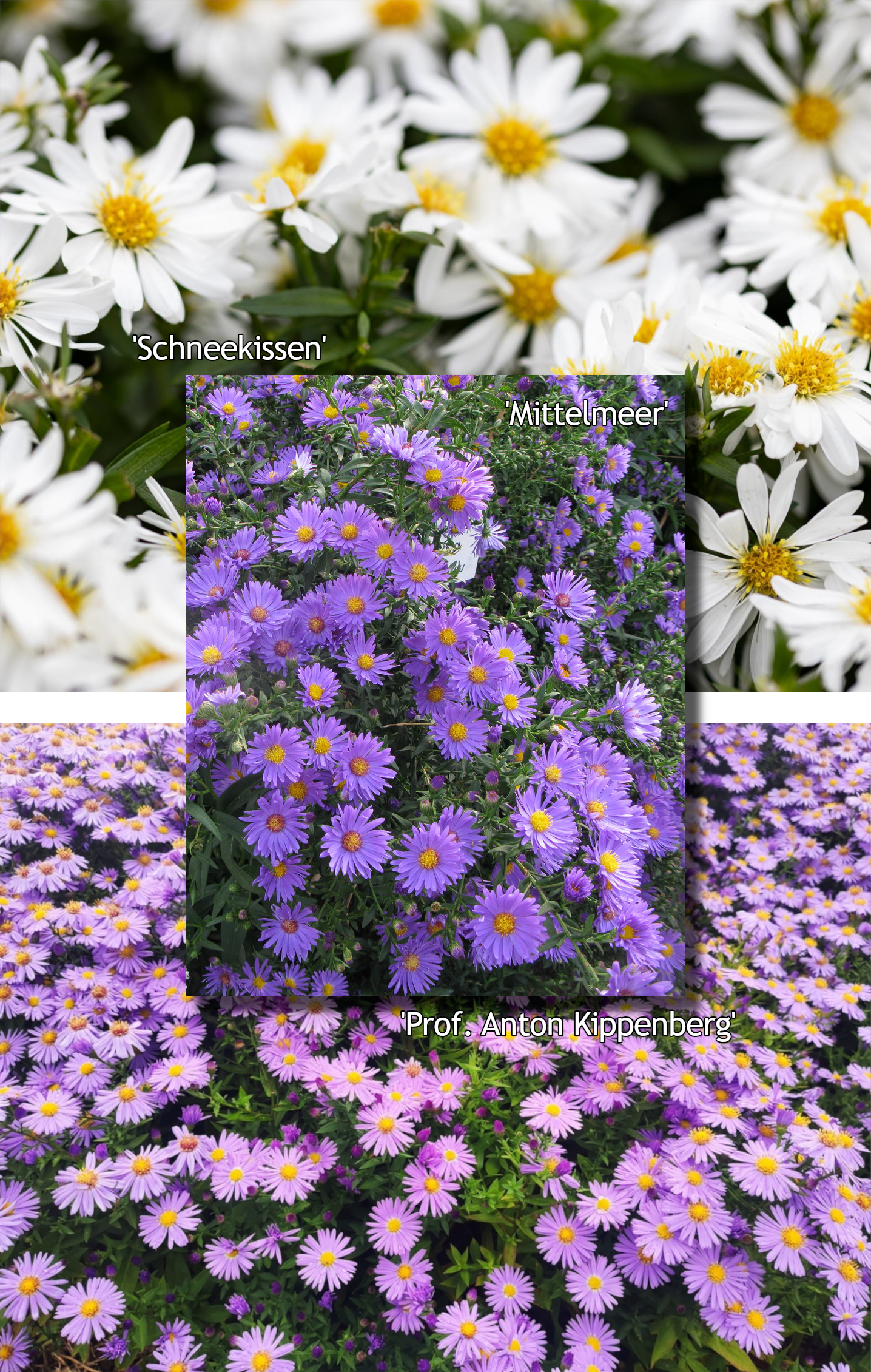 Breng kleur en charme naar je tuin met dit asterpakket! Dit pakket bevat drie prachtige soorten: De Aster (D) 'Prof. Anton Kippenberg', een vurige purperen bloeier met een rijke uitstraling, de Aster (D) 'Schneekissen', met zijn heldere witte bloemen die een verfrissend contrast bieden, en de Aster (D) 'Mittelmeer', die met zijn lila-blauwe tinten de zomer op een prachtige manier afsluit. Samen vormen ze een uitgebalanceerd kleurenpalet, dat van de late zomer tot het najaar bloeit. De plantjes hebben bij levering een hoogte van tussen de 0 en 20 centimeter, afhankelijk van de periode van het jaar.