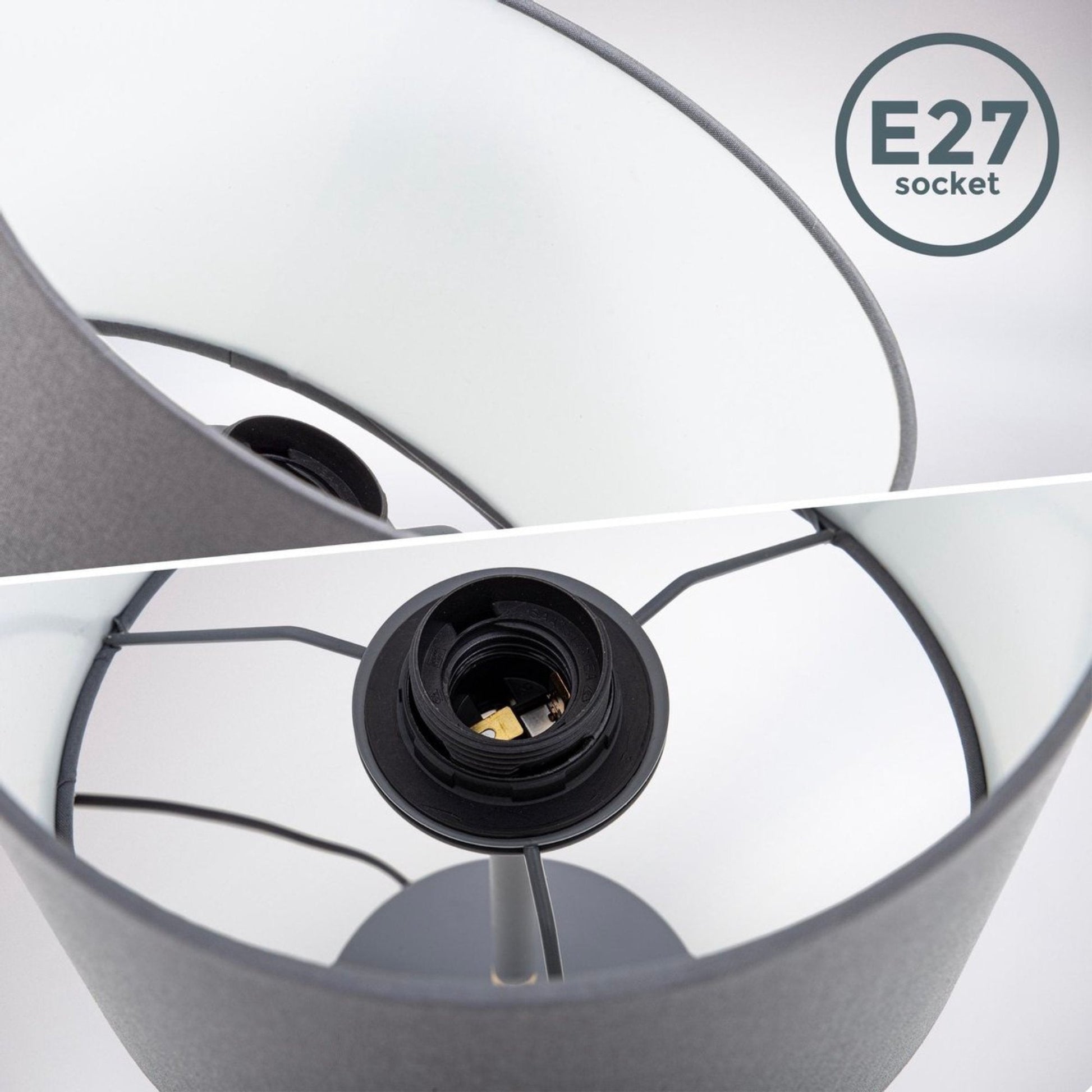 B.K.Licht - Grijze tafellamp - Metaal & stof - Met kap - Scandinavische bedlamp - Slaapkamer lamp - E27 fitting - Excl. lichtbron