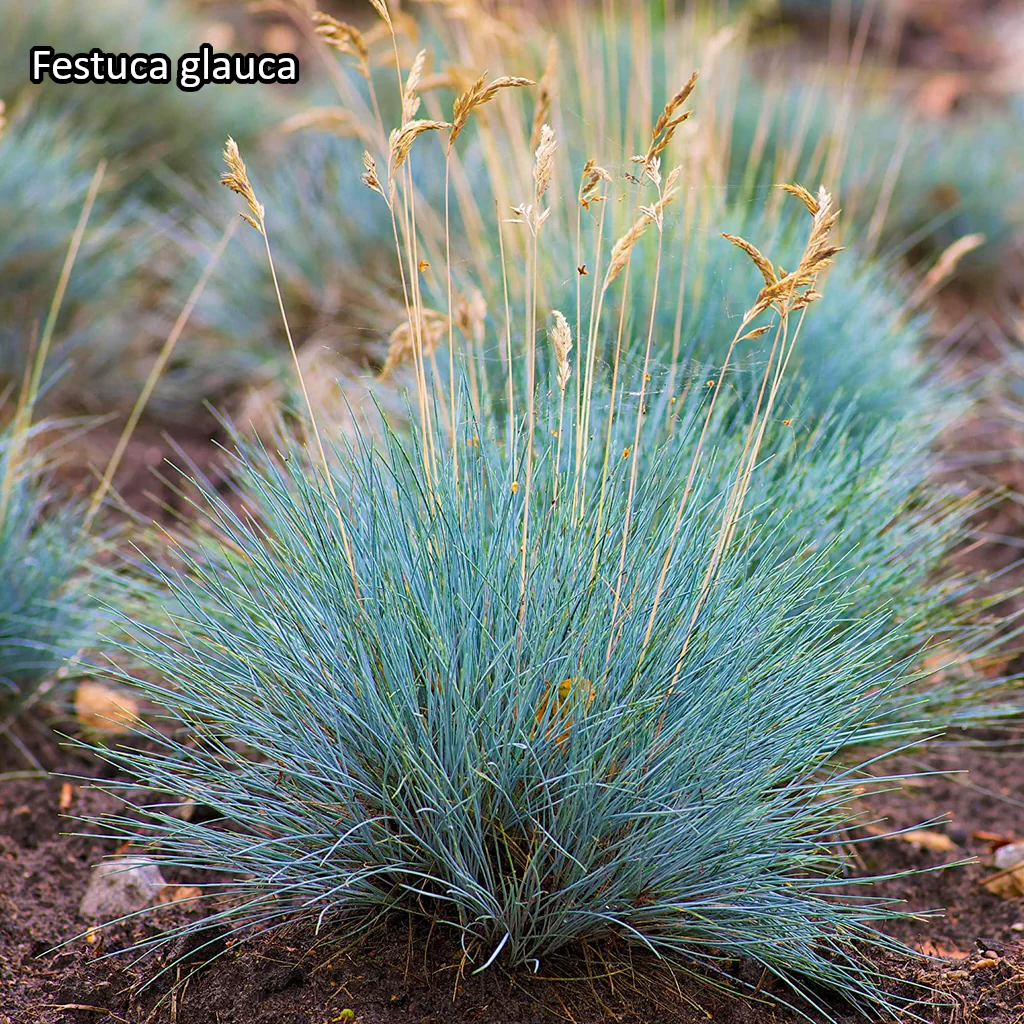 10× Festuca glauca – Laagblijvend blauw siergras met compact bolvormige groei.