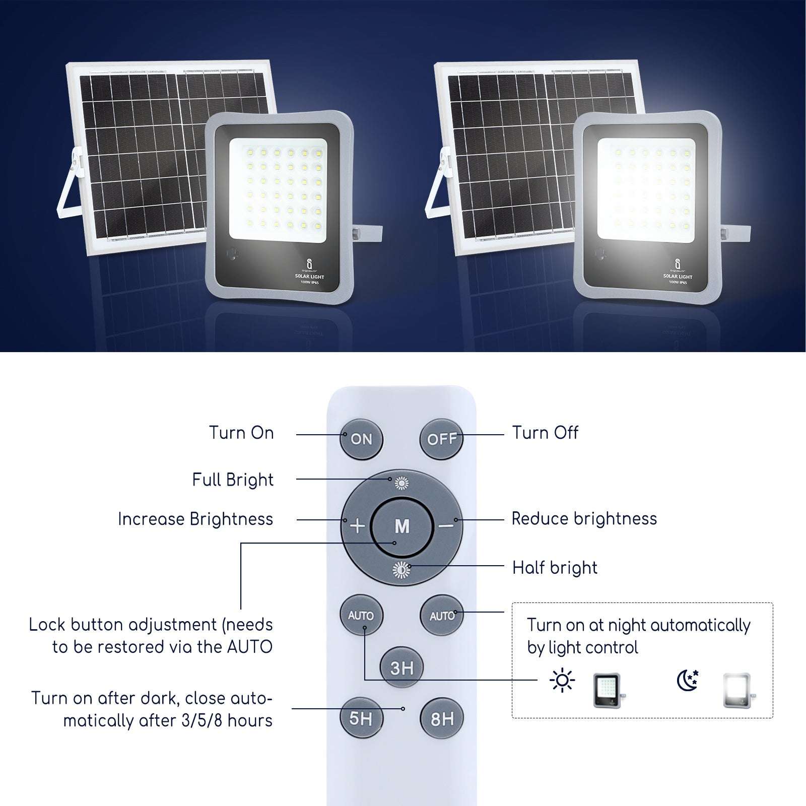 Buitenlamp grijs met zonnepaneel | LED bouwlamp 100W~1200 Lumen schijnwerper + afstandsbediening | daglichtwit 6500K - 90° lichthoek | waterdicht IP65