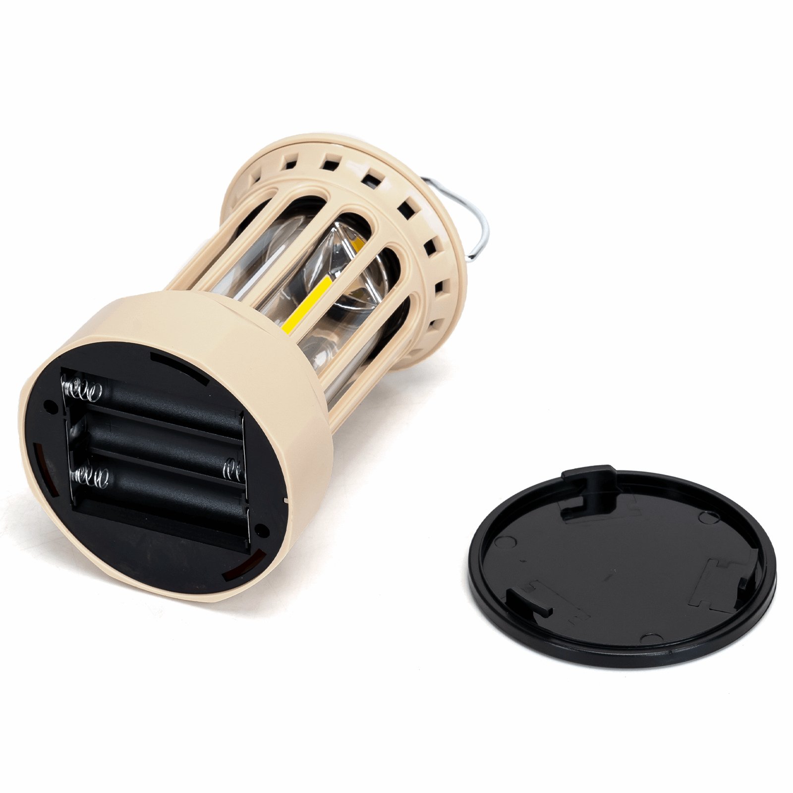 Noodlamp met Ophanghaak - LED Tentlamp op Batterijen (exclusief) - Warmwit licht - Creme body - Camping & Noodverlichting