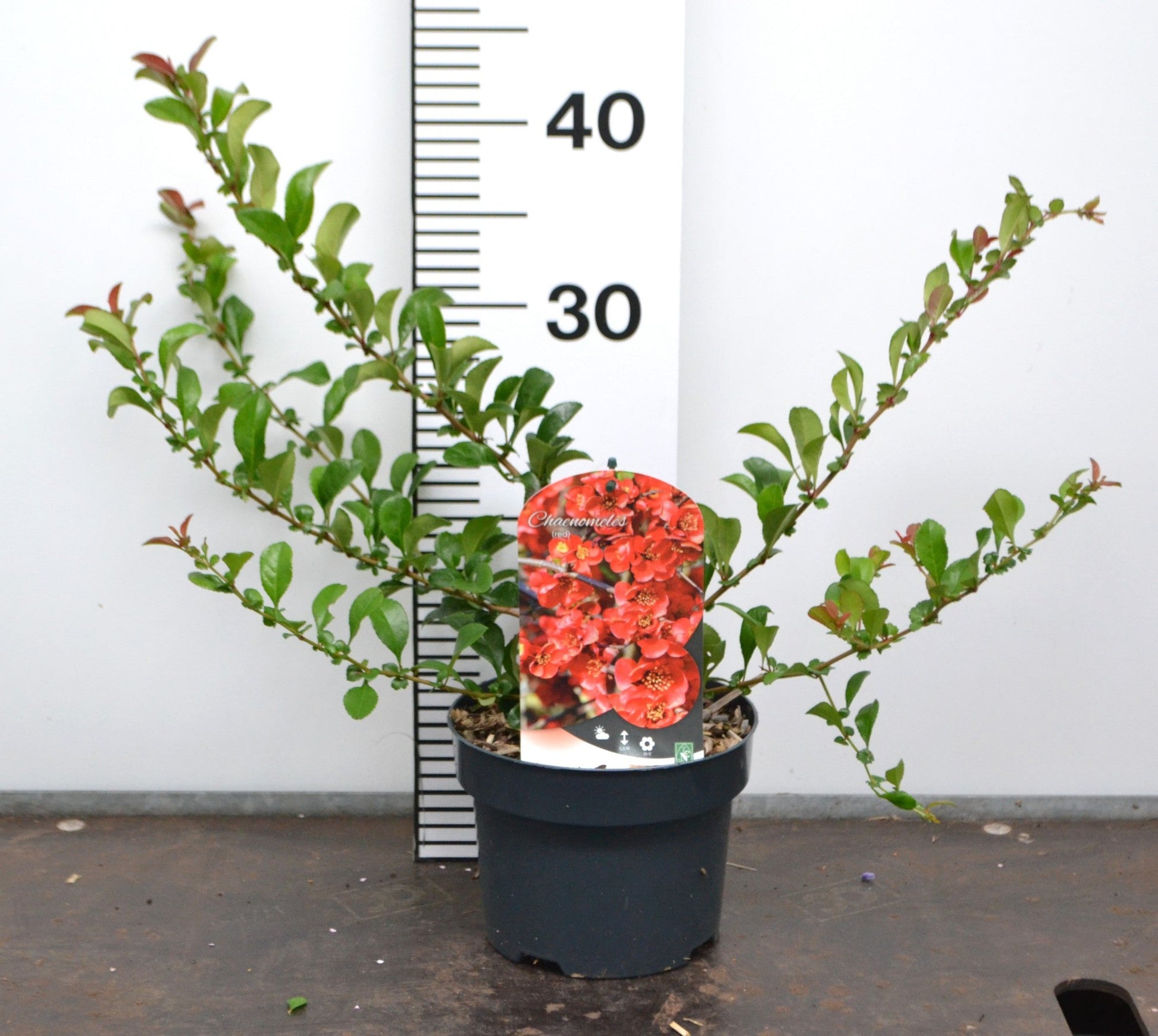 De Chaenomeles 'Red Trail', ook wel bekend als Japanse kweepeer, is een opvallende en veelzijdige struik die je tuin in het vroege voorjaar tot leven brengt met zijn levendig rode bloemen. Deze laagblijvende en uitbundig bloeiende heester is ideaal voor gebruik als bodembedekker, in borders, of langs muren en hekken.