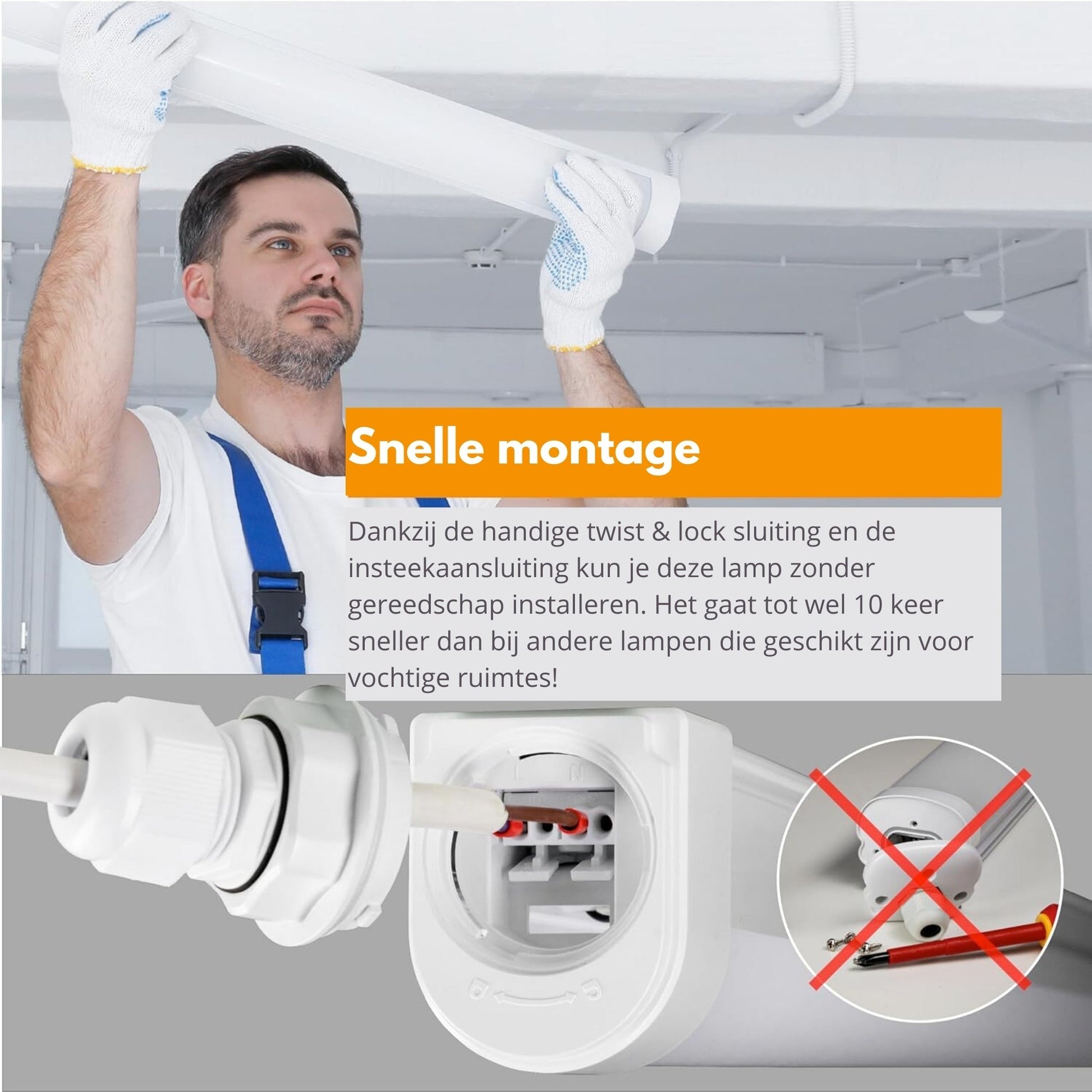 Comnox - LED TL lamp 120 cm - Direct helder licht voor lange ruimtes - Koppelbaar tot 10 lampen - Waterdicht IP65 - 36W 4320lm 4000K