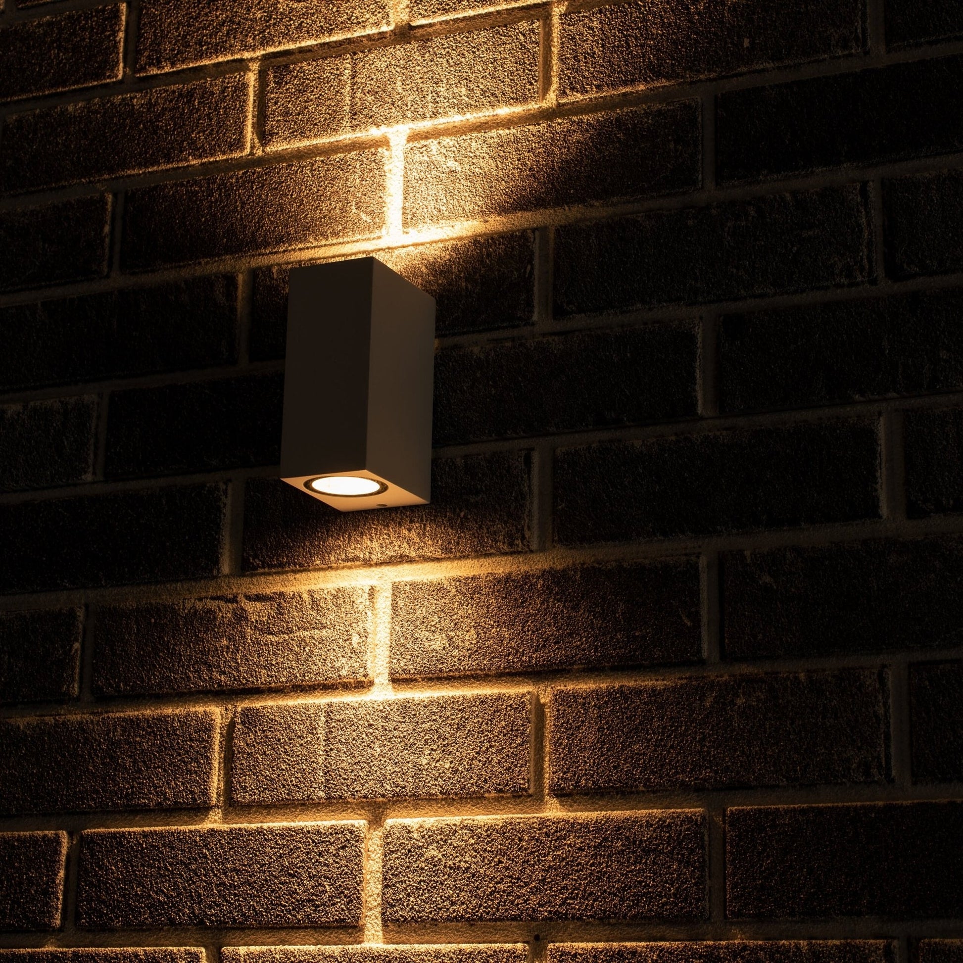 Comnox - NØRD Up&Down - LED's Light LED Buitenlamp met GU10 fitting - Rechthoek - IP44 - Wit - Milaan - Duurzame aluminiumwandlamp - 2‑richtingsverlichting - LED lamp, buiten, binnen
