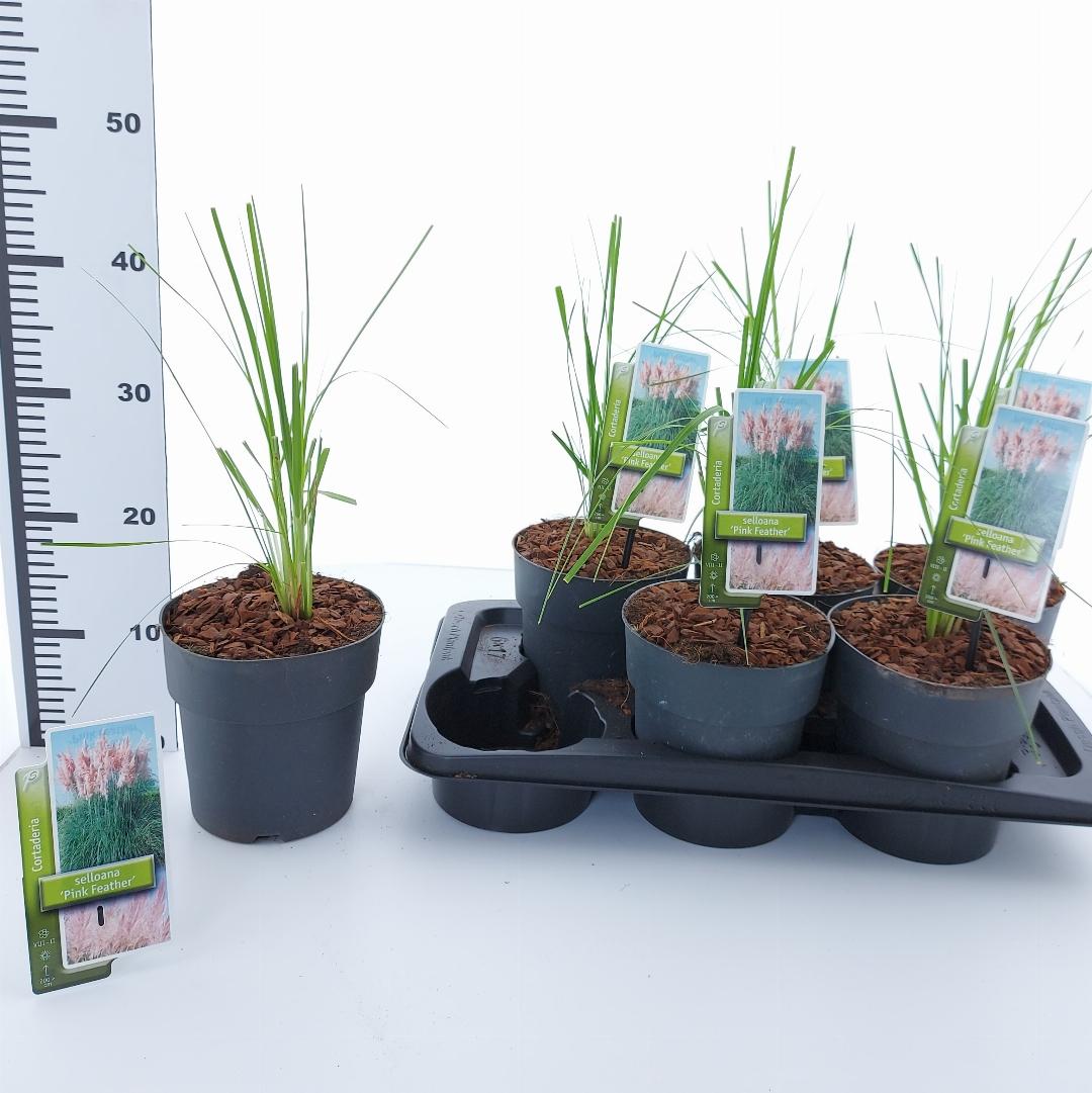 De Cortaderia selloana 'Pink Feather', beter bekend als roze pampasgras, is een opvallende sierplant die met haar grote, zachtroze pluimen een exotische en elegante sfeer in de tuin brengt. Dit siergras bloeit in de late zomer en herfst en zorgt voor een luchtig en speels effect in borders, als solitair of in grote potten. De sierlijke pluimen steken hoog boven het smalle, groenblijvende blad uit en blijven tot ver in de winter decoratief. Dit siergras wordt geleverd in P9, C2 of C5 pot. Hoe groter de pot, hoe groter de kluit, hoe groter de plant uiteindelijk kan worden.
