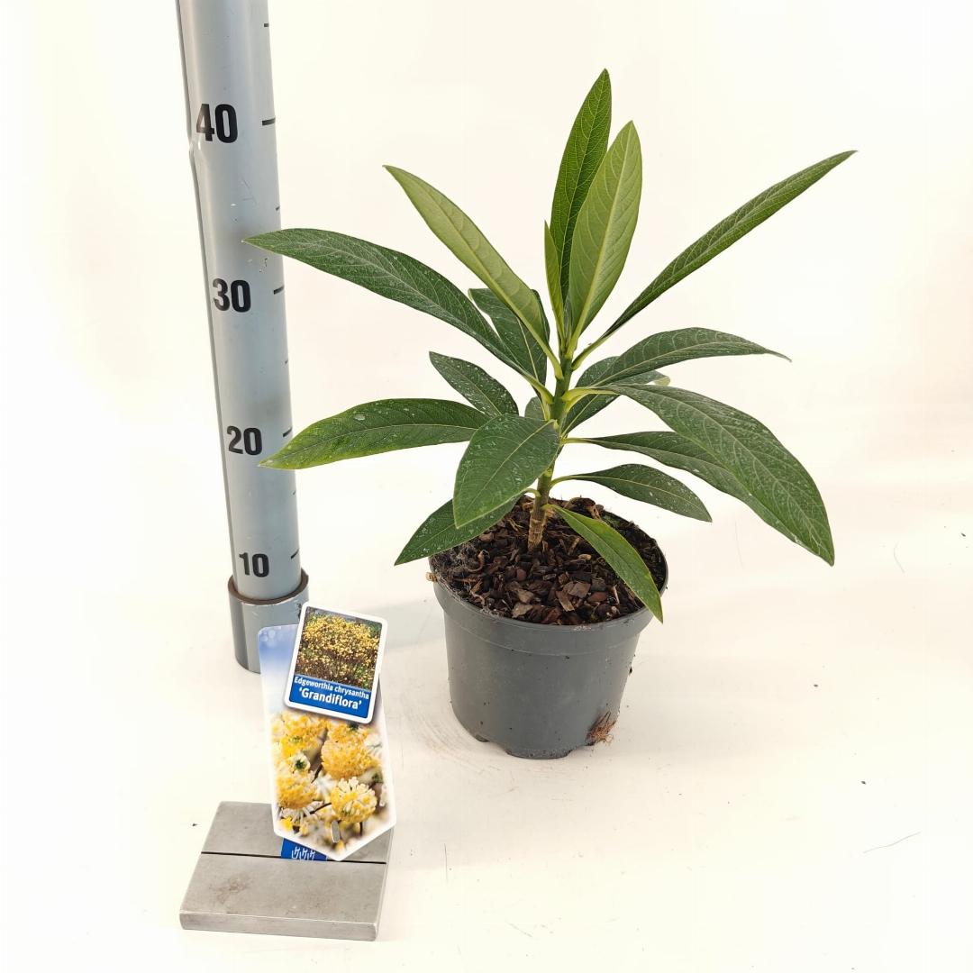 De Edgeworthia chrysantha ‘Grandiflora’, ook wel bekend als de Papierstruik, is een unieke heester die kleur en geur in de wintertuin brengt. Deze zeldzame sierstruik bloeit al vanaf februari tot april met grote trossen geurige, zachtgele bloemen die lijken op die van een toverhazelaar. De bloemen verschijnen nog vóór het blad, waardoor ze extra opvallen in de kale wintertuin. Het blad dat daarna volgt, is frisgroen en groot, met in de herfst een prachtige goudgele verkleuring.