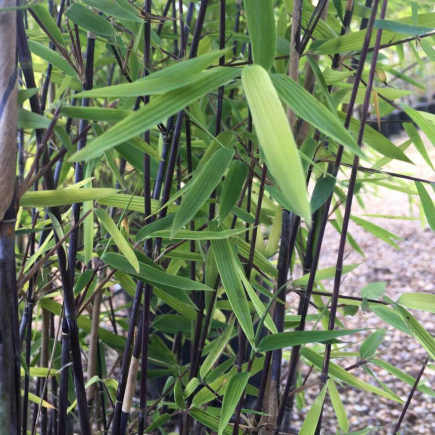 - Groeiwijze: De bamboe heeft een rechtopgaande, dichte groei en een elegante uitstraling dankzij de donkere, bijna zwarte stelen.