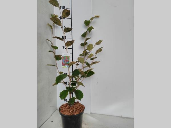De Hamamelis intermedia 'Diane', ook wel bekend als de toverhazelaar, is een sierlijke heester die vooral in de wintertuin een spectaculaire verschijning is. Deze variëteit bloeit van januari tot maart met opvallende, spiraalvormige bloemen in diep karmozijnrode tinten. De bloemen verspreiden een aangename, lichte geur. In de herfst krijgt het groene blad prachtige oranje- en roodtinten, waardoor deze struik twee seizoenen een eyecatcher is.