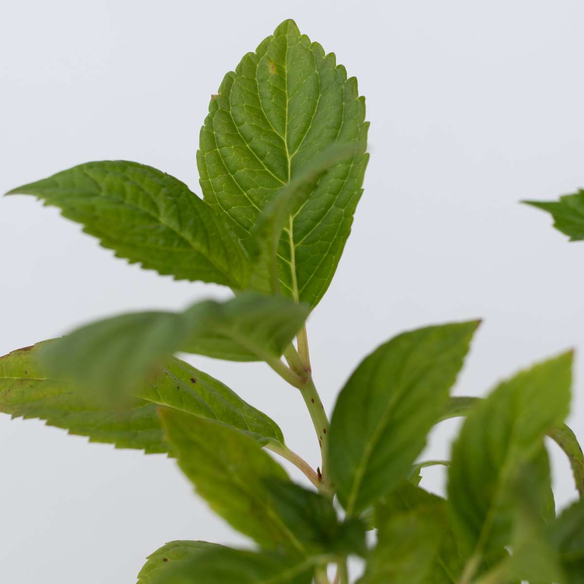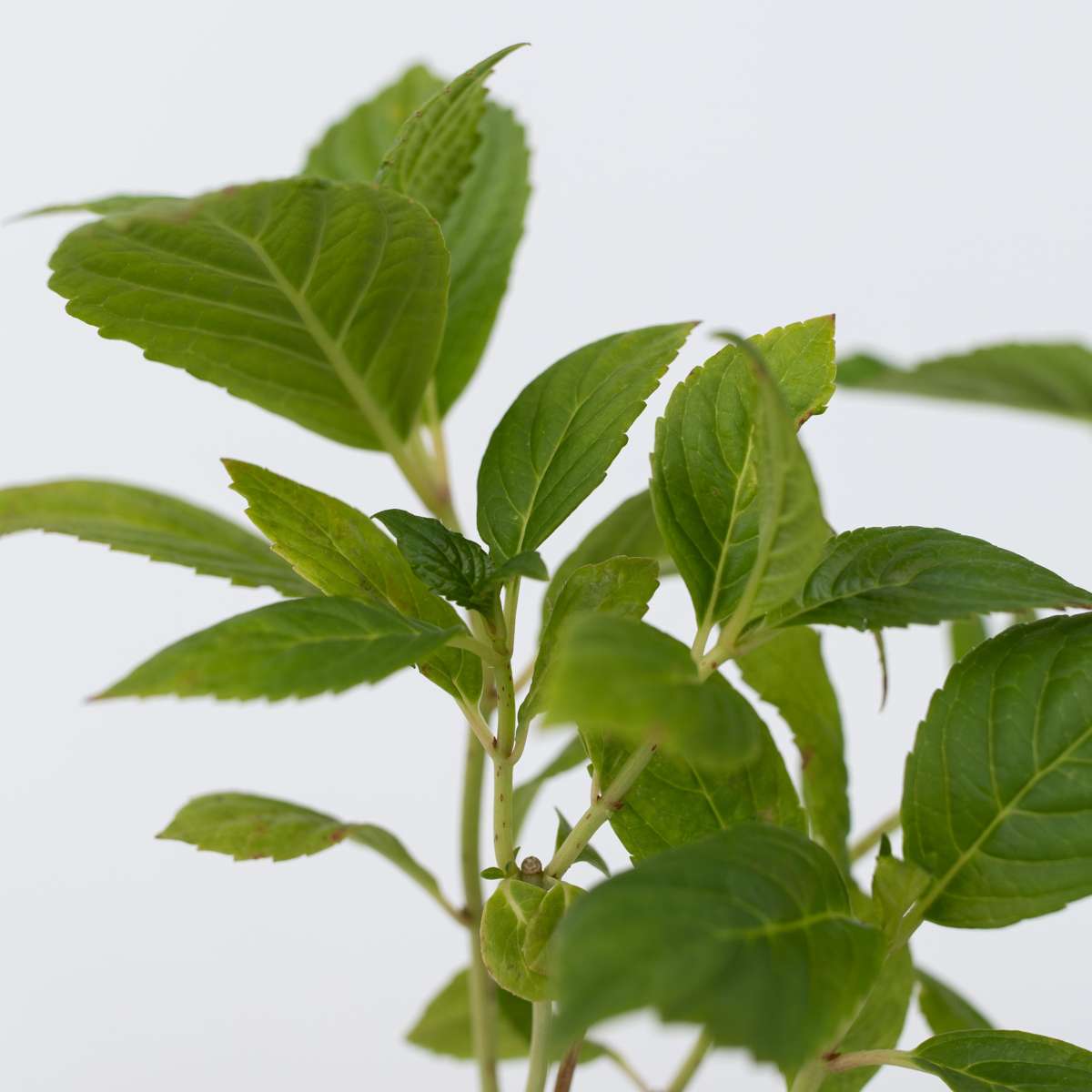 Bij Hortensia’s is het belangrijk om de uitgebloeide bloemen af te snijden. Laat de oude bloemen echter tijdens de wintermaanden met rust. Ze vormen een bescherming voor de nieuwe bloemknoppen tegen vorst en gure wind. In maart, als het gevaar voor vorst geweken is, kunnen alle bruine, oude, uitgebloeide bloemen teruggesnoeid worden tot net boven de eerste of tweede gezonde knop. Deze manier van snoeien stimuleert de groei van nieuwe scheuten en zorgt ervoor dat de bloemgrootte niet afneemt. Alle soorten Hortensia’s houden absoluut niet van droogte. Als ze droog zijn, vooral in de lente en de zomer, geef ze dan krachtig water. Het is niet verstandig om ze af en toe water te geven. Het beste is om ze in één keer een grote hoeveelheid water te geven. Tijdens de bloeiperiode worden Hortensia’s aan de onderkant soms wat kaal. Ook kunnen de bladeren geel worden. Dit wordt vrijwel altijd veroorzaakt door droogte.