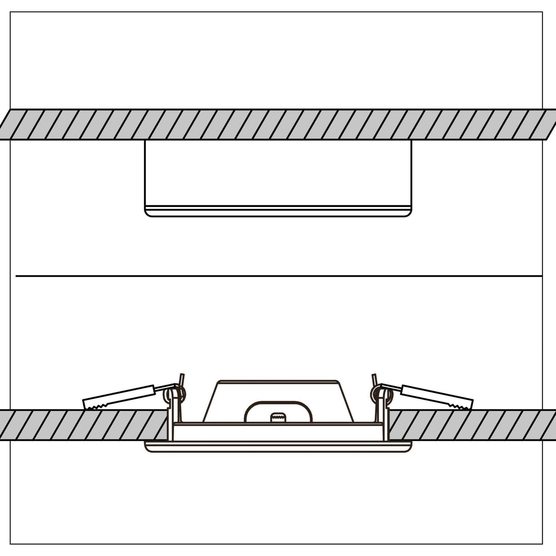 De downlight heeft een geïntegreerde driver en is ultra dun, wat zorgt voor een strakke afwerking. Met de inbegrepen CCT schakelaar kunt u de kleurtemperatuur aanpassen van warm wit tot koel wit licht. De lamp is fase aansnijding dimbaar en kan zowel inbouw als opbouw worden gemonteerd dankzij het meegeleverde frame.