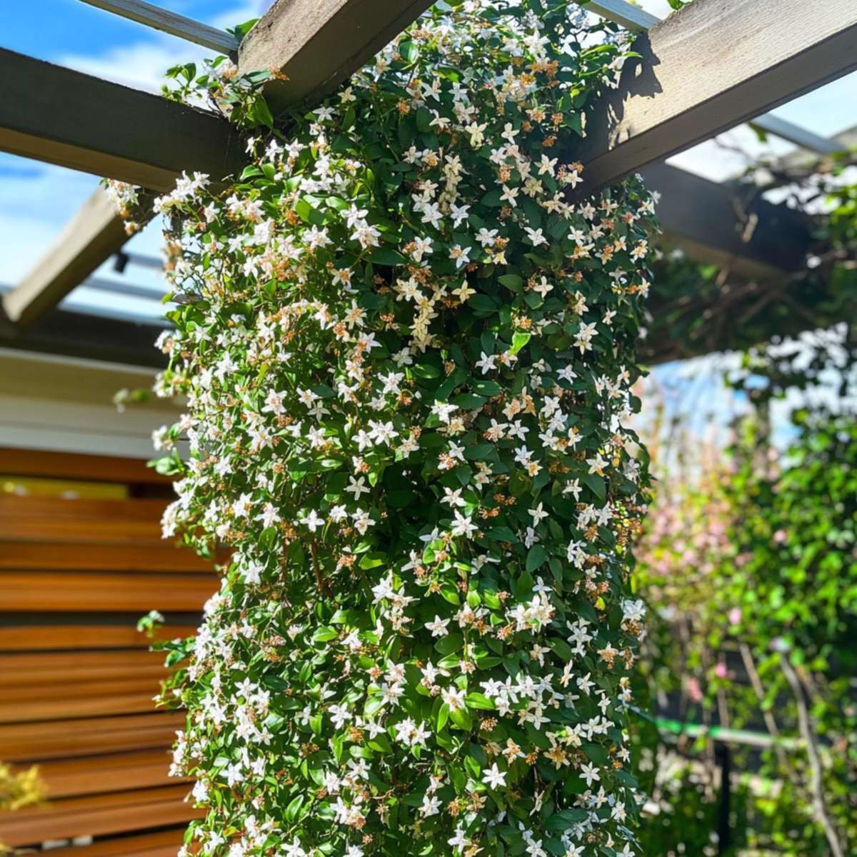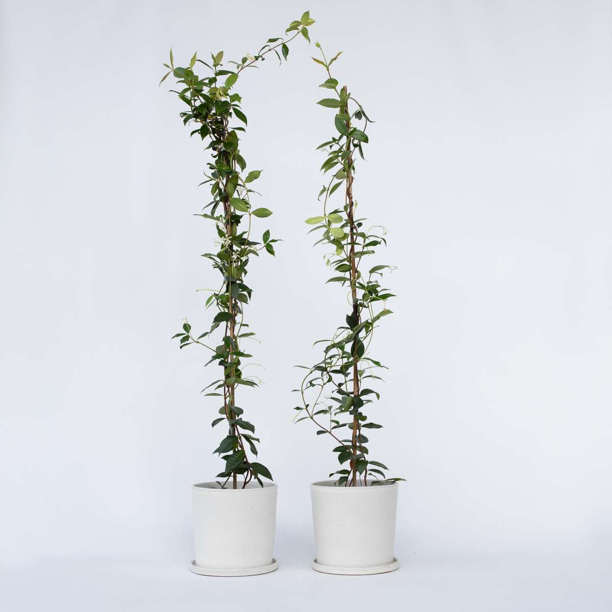 De Jasmijnplant heeft de Latijnse naam 'Trachelospermum Jasminoïdes' maar is beter bekend als Sterjasmijn of Toscaanse Jasmijn. Het is een fantastische groenblijvende klimplant met veel goede eigenschappen. Zo heeft hij het hele jaar door prachtig donkergroen blad, dat in de winter soms een rode, bronsachtige kleur aanneemt. Maar het mooiste aan deze plant zijn de prachtige geurende witte bloemen. Vanaf het voorjaar verschijnen er witte, stervormige bloemen die een heerlijke geur verspreiden, die ook vaak in parfums wordt gebruikt.