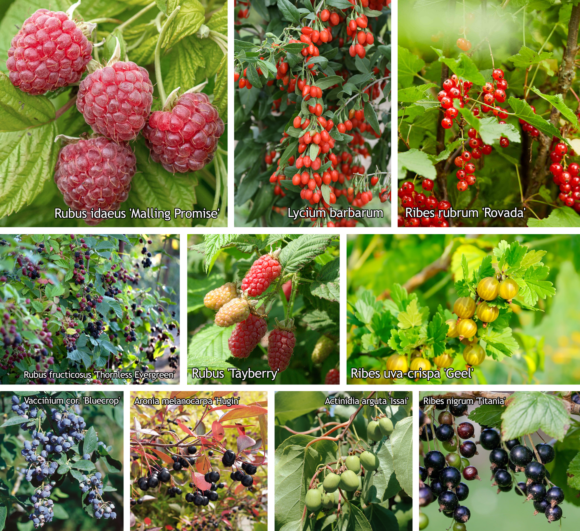 - 1x Aronia melanocarpa 'Hugin' – Zwarte Aronia bessen die rijk zijn aan antioxidanten en ideaal zijn voor sappen en jam.