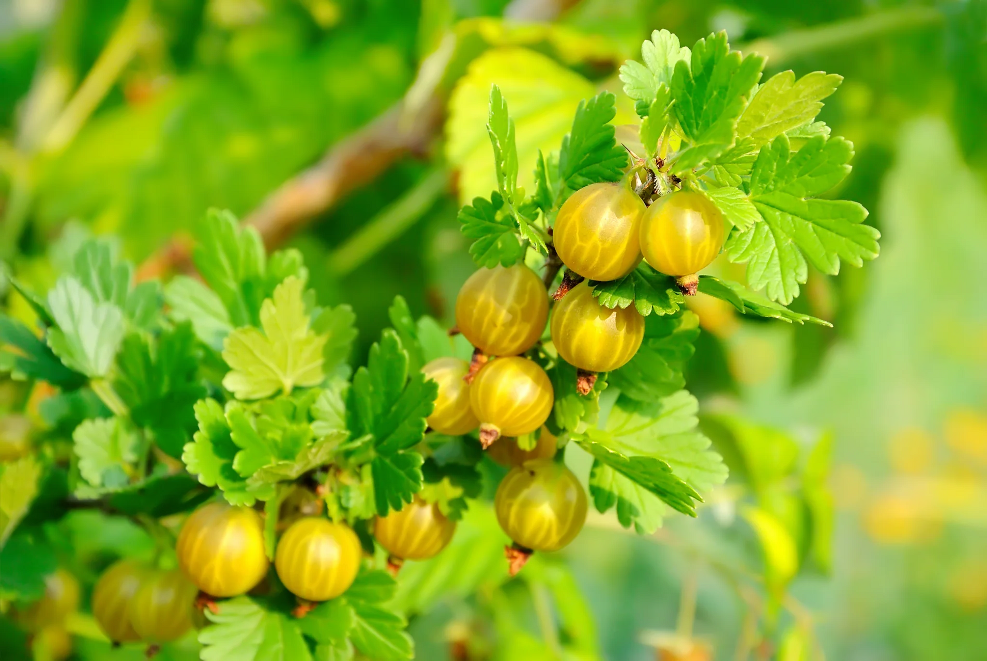 - 1x Ribes uva-crispa 'Geel' – Gele kruisbessen die een frisse, zure smaak hebben, ideaal voor het maken van gelei of om zo te eten.