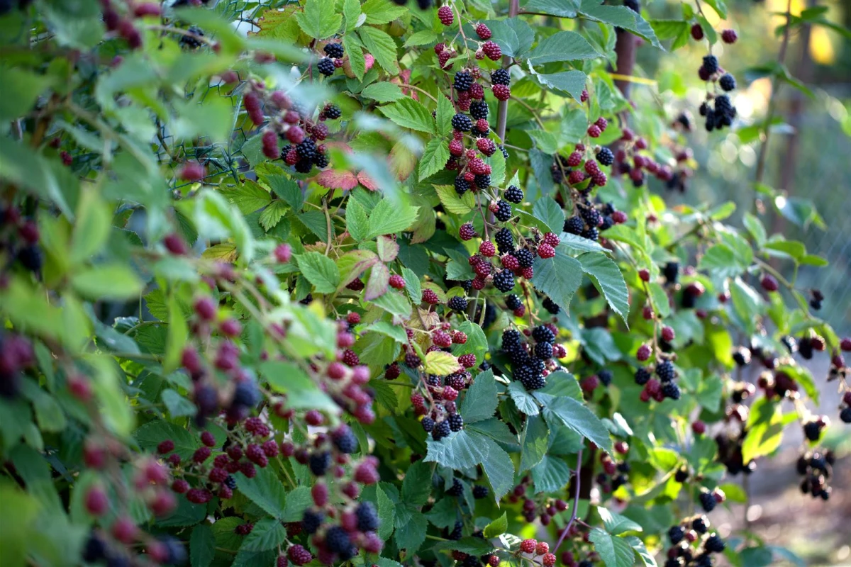 - 1x Rubus fruticosus 'Thornless Evergreen' – Doornloze bramen met een rijke, zoete smaak die in de zomer rijpen.