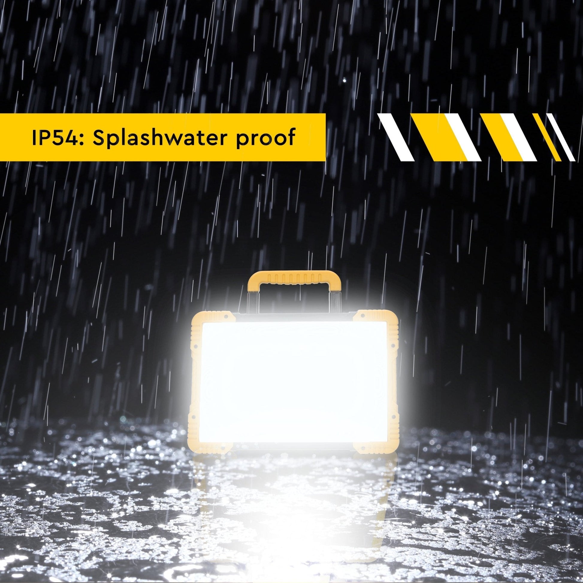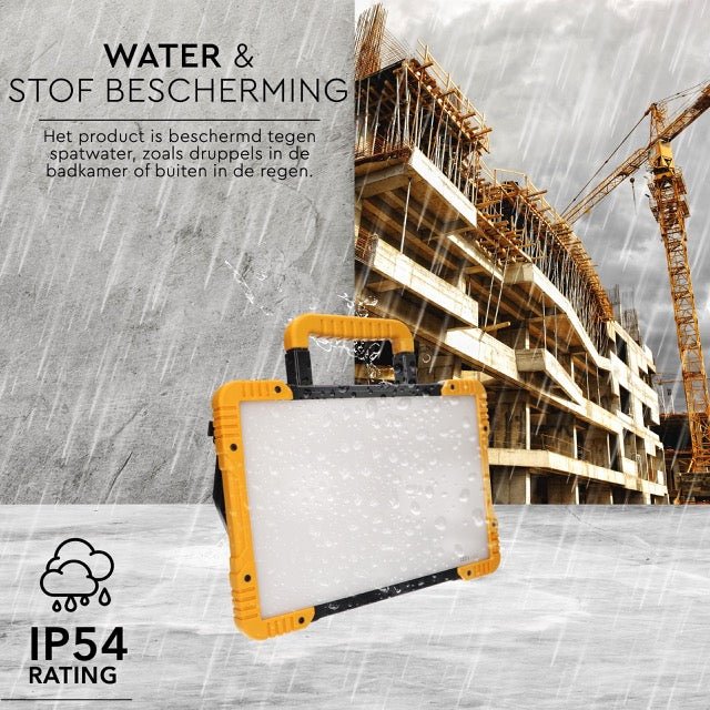 De lichtopbrengst van deze bouwlamp is met 5500 lumen zeer goed te noemen. En dat doet hij met een stroomvoeding van slechts 47W. Indrukwekkend! De kleurtemperatuur van 5000 Kelvin zorgt voor een koel wit licht, wat ideaal is voor werkverlichting. Het licht is overigens dimbaar in 3 stappen (100%, 50% en 25%), zodat je altijd de perfecte lichtintensiteit hebt.
