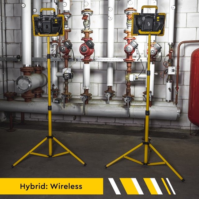 De MultiPro LED bouwlamp combineert het beste van 2 werelden. Je kunt deze bouwlamp bedraad gebruiken op stroomvoorziening, maar ook draadloos gebruik op accu is mogelijk.