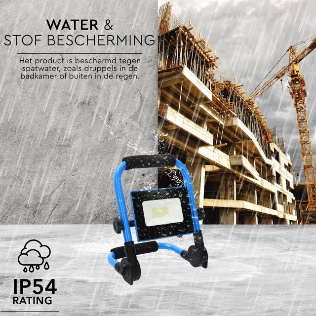 Een klus te doen in een vochtig kruipluik of op een stoffige zolder? Geen zorgen: deze oplaadbare LED bouwlamp beschikt over de IP54 gradatie. Hiermee ben je ervan verzekerd dat hij volledig spatwater- en stofdicht is. Ook voor buitengebruik is de bouwlamp dus geschikt. Een beetje regen doet hem niets!