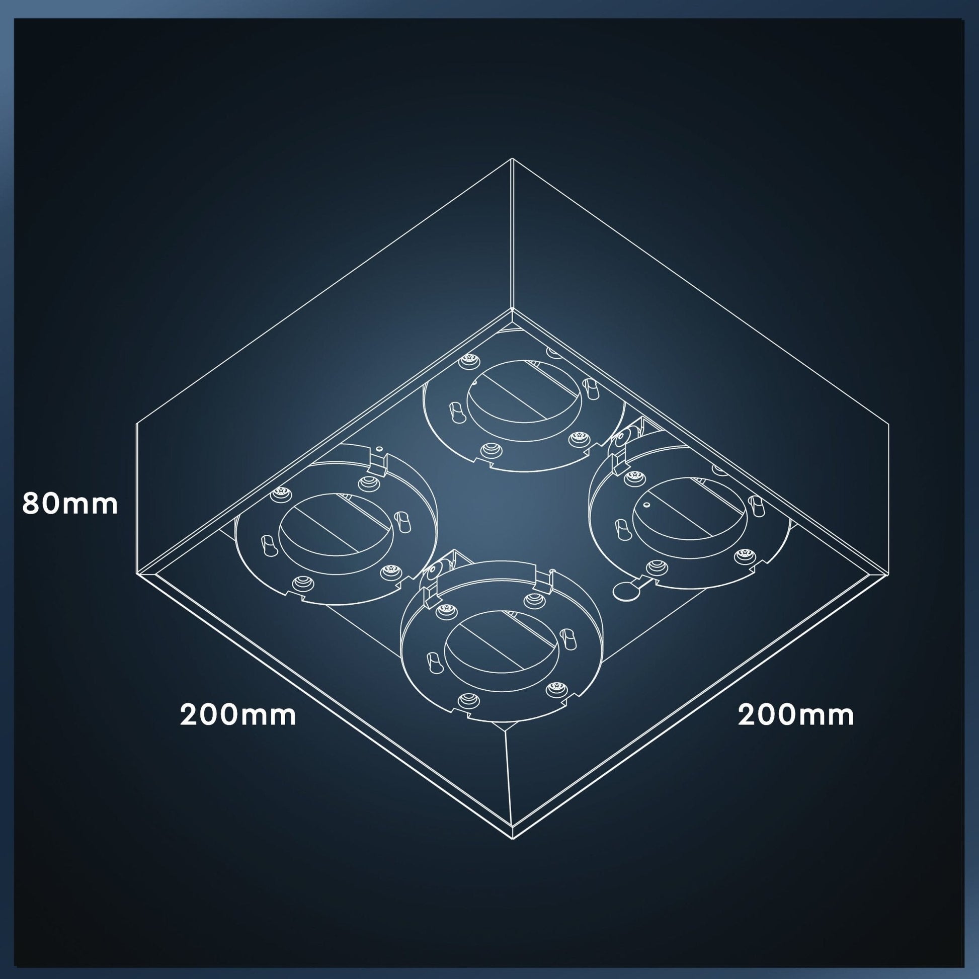 Deze moderne plafondlamp met vier spots is een veelzijdige en effectieve manier om elke kamer in huis te verlichten en een stijlvol accent toe te voegen. Combineer deze plafondlampen met LED GX53 lampen in verschillende lichtkleuren om de gewenste sfeer te creëren. Het tijdloze en slanke design past perfect in elke kamer en de lamp wordt geleverd met een garantie van 2 jaar.