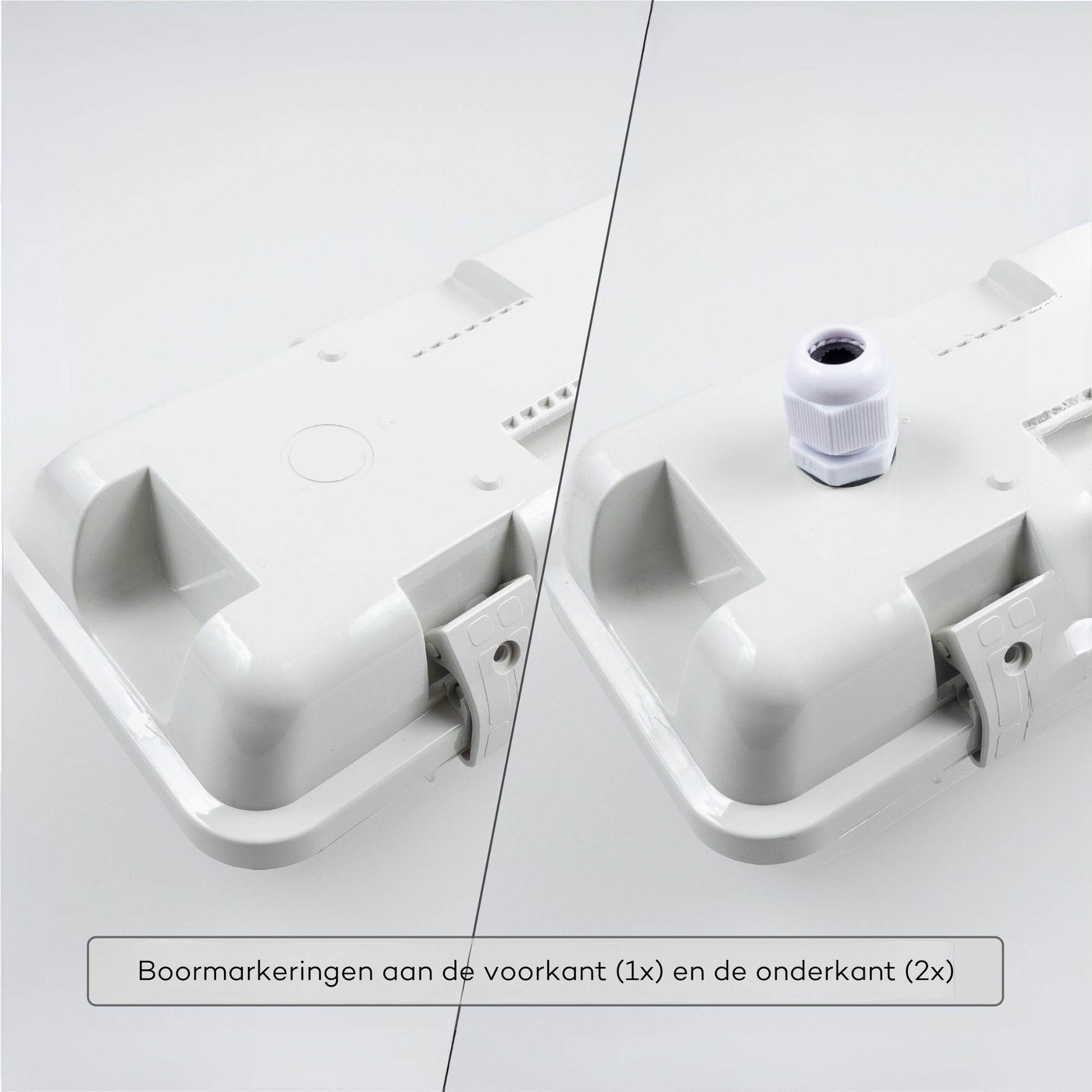Dit armatuur heeft een robuuste polycarbonaat behuizing en is voorzien van de nodige beschermingsgradaties. Stof en water(stralen) doen hem niets, waardoor je hem vol vertrouwen in vochtige ruimtes en zelfs in de buitenlucht kunt plaatsen. Ook zijn de dubbele Proventa armaturen bijzonder impactbestendig (IK08).