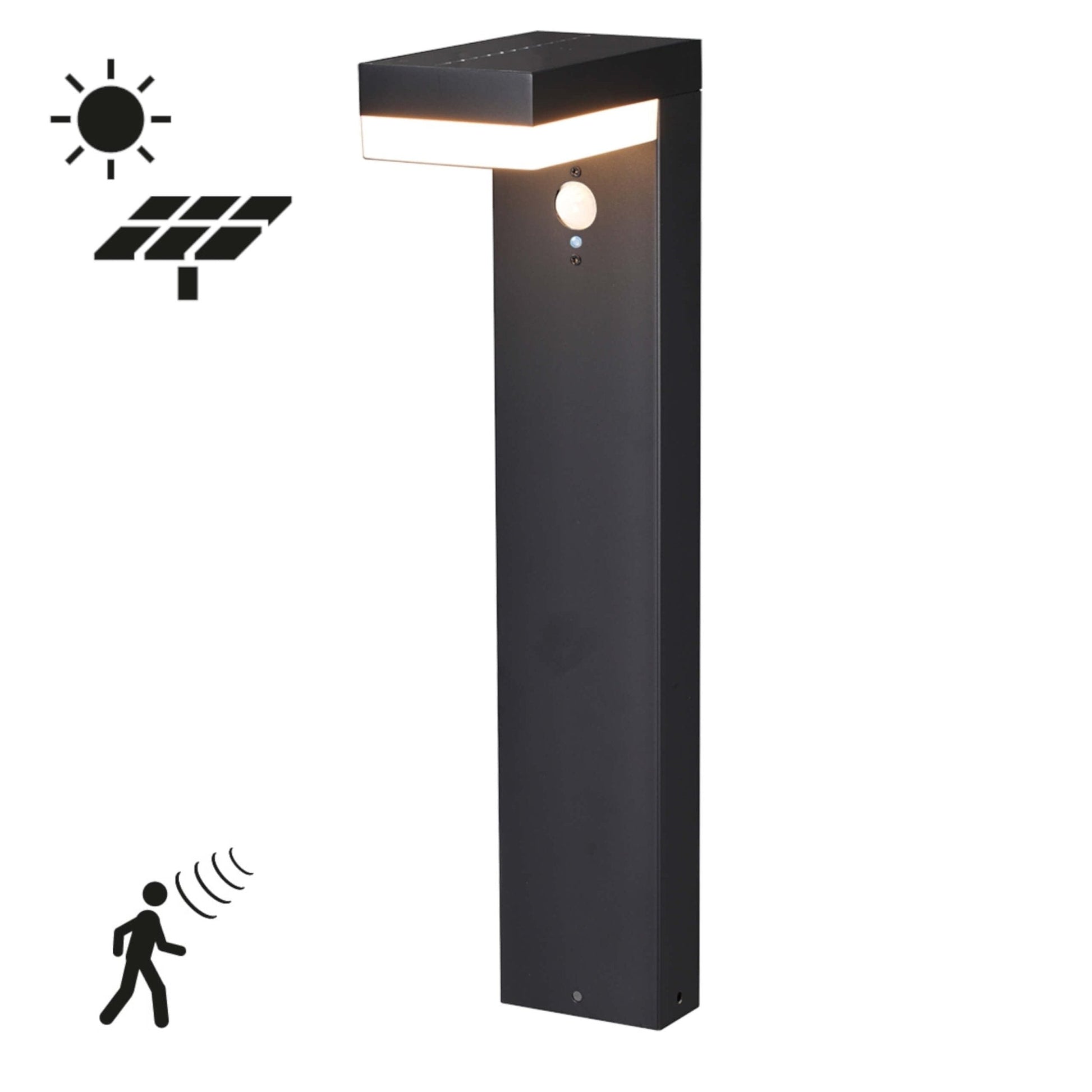 LED's Light RVS Solar LED Tuinlamp Paallamp met Bewegingssensor - Draadloos - 3 standen - Zwart