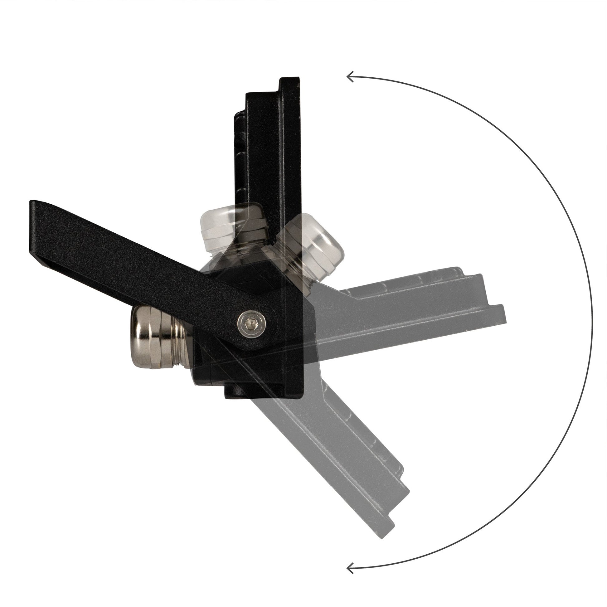 Het monteren is overigens kinderlijk eenvoudig dankzij de meegeleverde beugel. De lamp is kantelbaar zodat je zelf de optimale richting van de lichtbundel kunt bepalen. Kabels werk je eenvoudig en veilig weg middels het doordachte ontwerp van de achterklep.