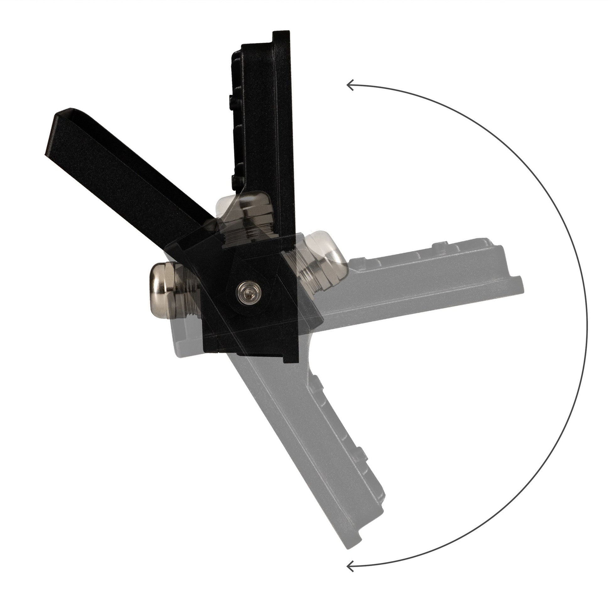 Het monteren is overigens kinderlijk eenvoudig dankzij de meegeleverde beugel. De lamp is kantelbaar zodat je zelf de optimale richting van de lichtbundel kunt bepalen. Kabels werk je eenvoudig en veilig weg middels het doordachte ontwerp van de achterklep.