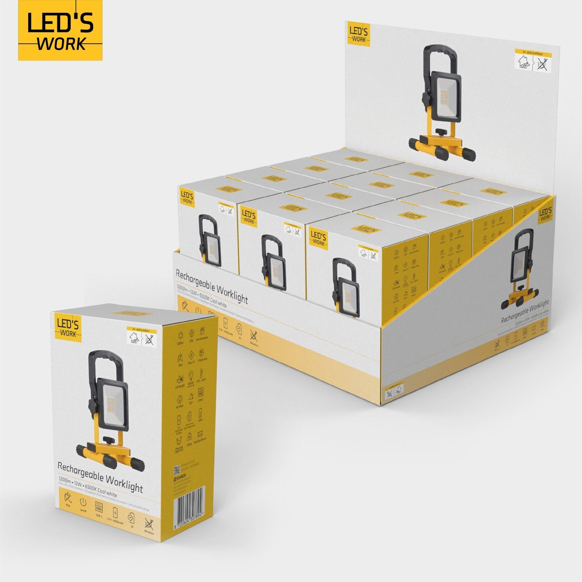 LED's Work draadloze LED Werklamp op accu 1200lm - Oplaadbaar en kantelbaar - Zwart geel