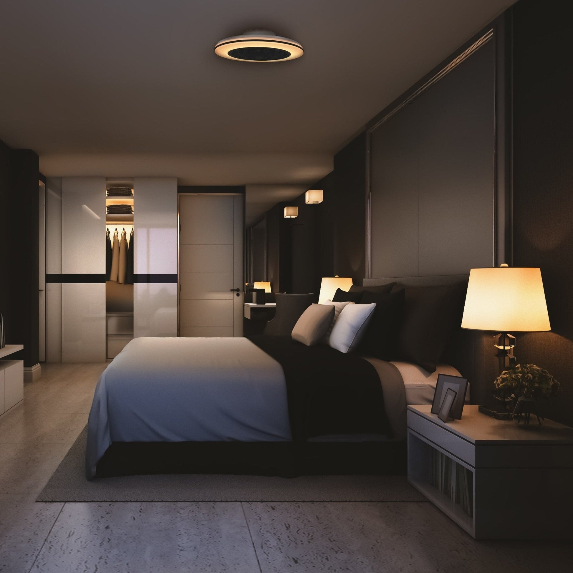 De Moderno plafondventilator met verlichting combineert het beste van twee werelden. Niet alleen geeft hij altijd de benodigde hoeveelheid licht af, ook kun je hem gebruiken om het frisser of juist warmer te maken in de ruimte. Bovendien heeft de plafondlamp ventilator een modern design, waardoor hij naadloos in ieder interieur past.