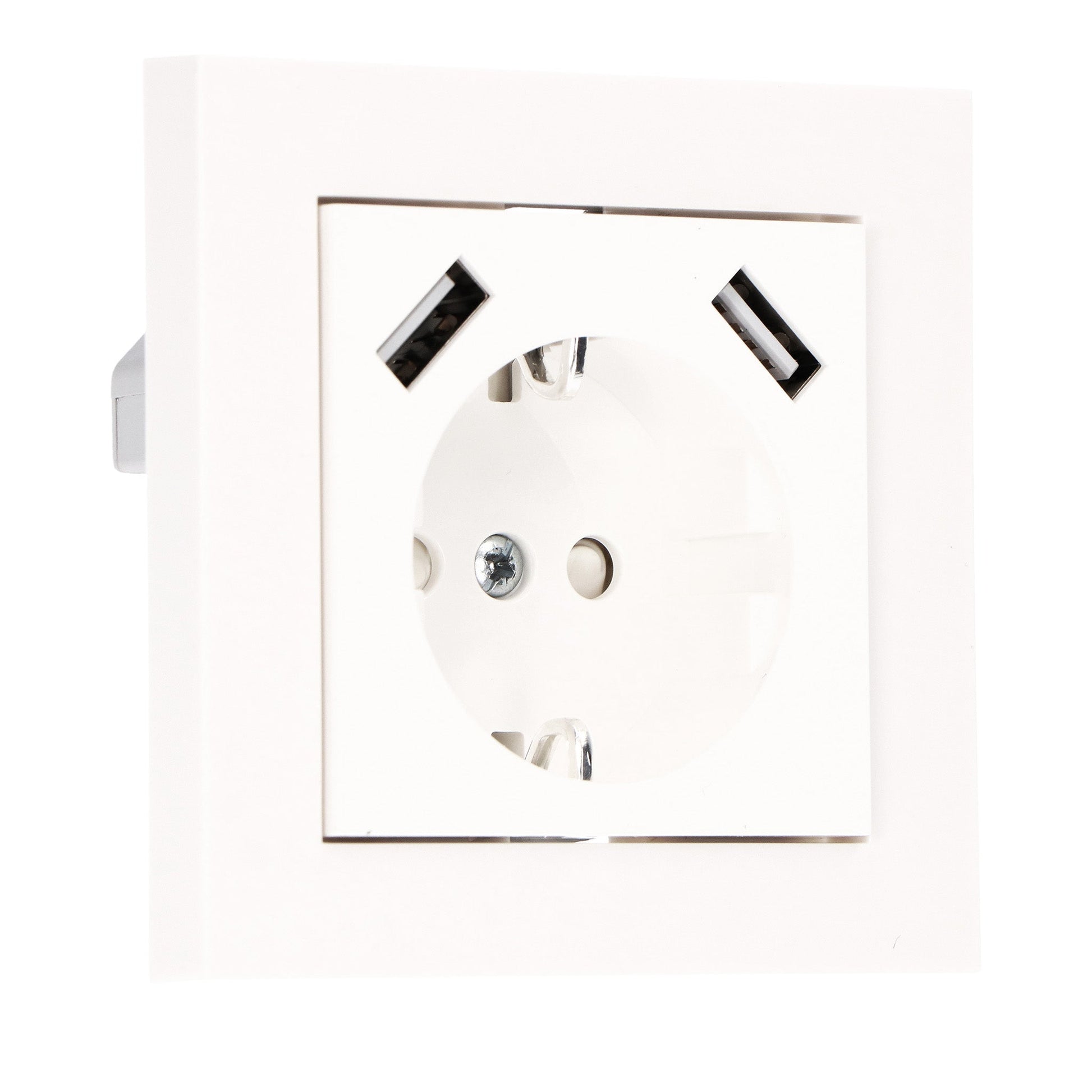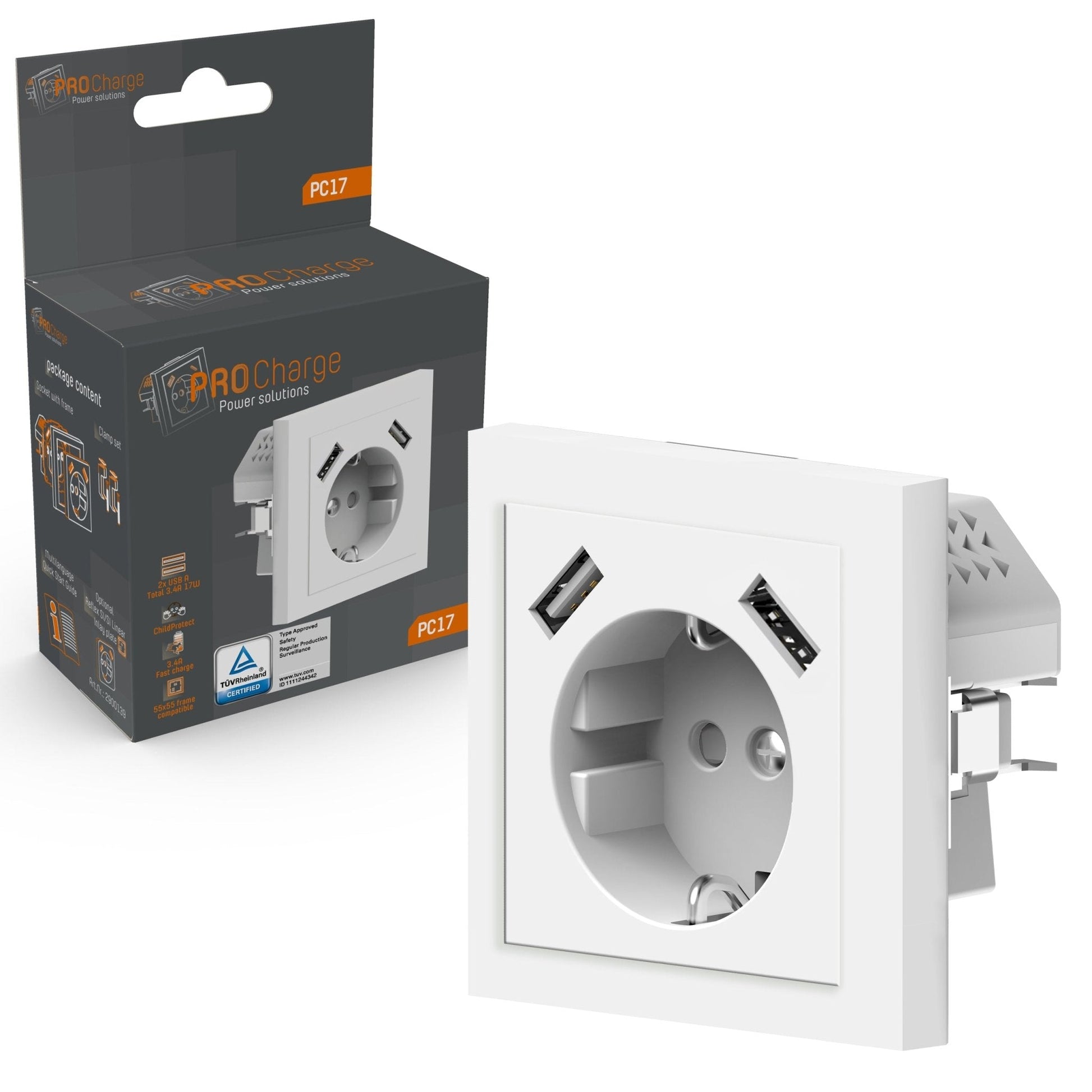 ProCharge Wandcontactdoos met 2 USB snelladers - Universeel - Wit - RAL9010