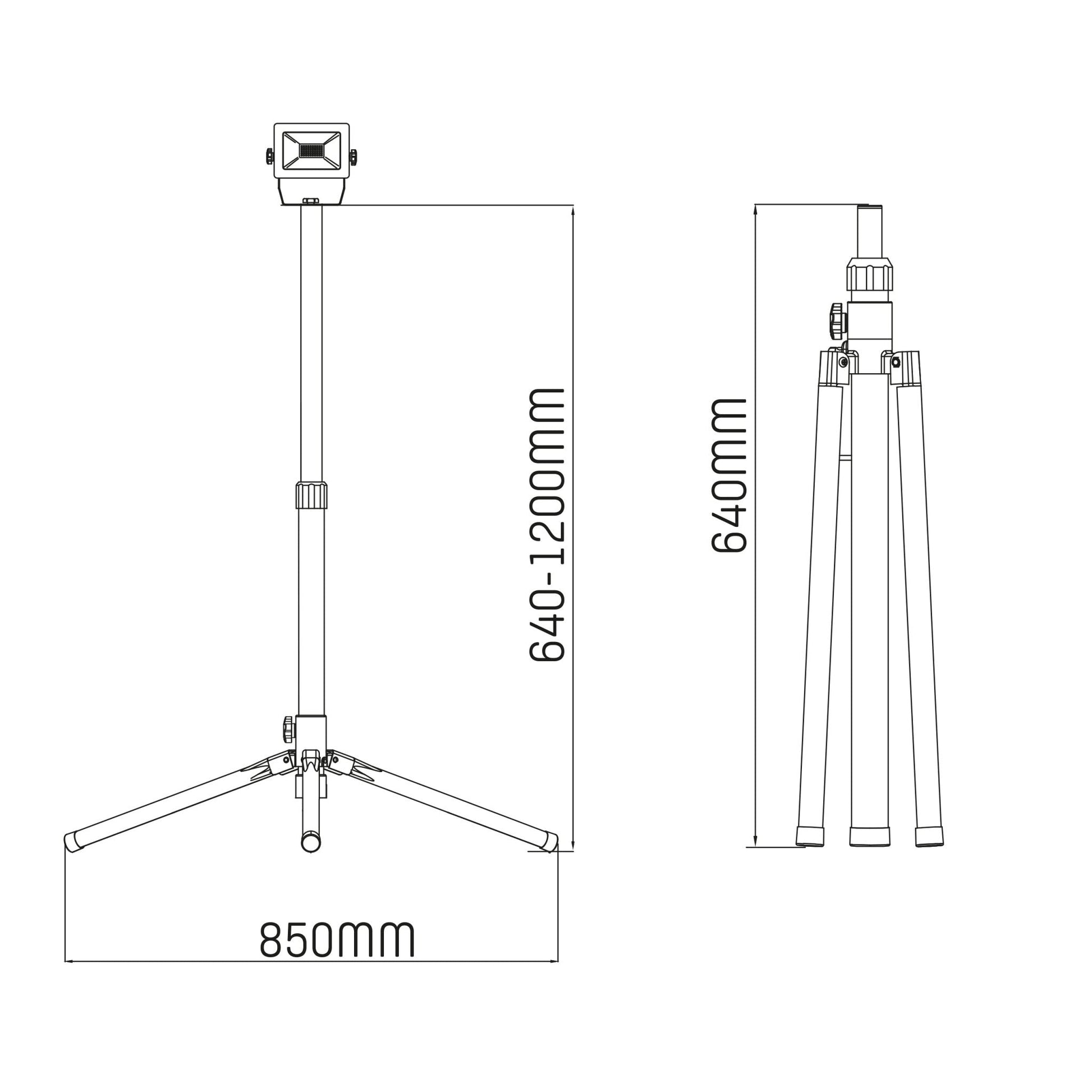 Het statief van deze bouwlamp is in hoogte verstelbaar tot 120 cm, zodat je het licht precies kunt richten waar het nodig is. Het stabiele statief zorgt voor evenwicht en voorkomt omvallen tijdens het gebruik.