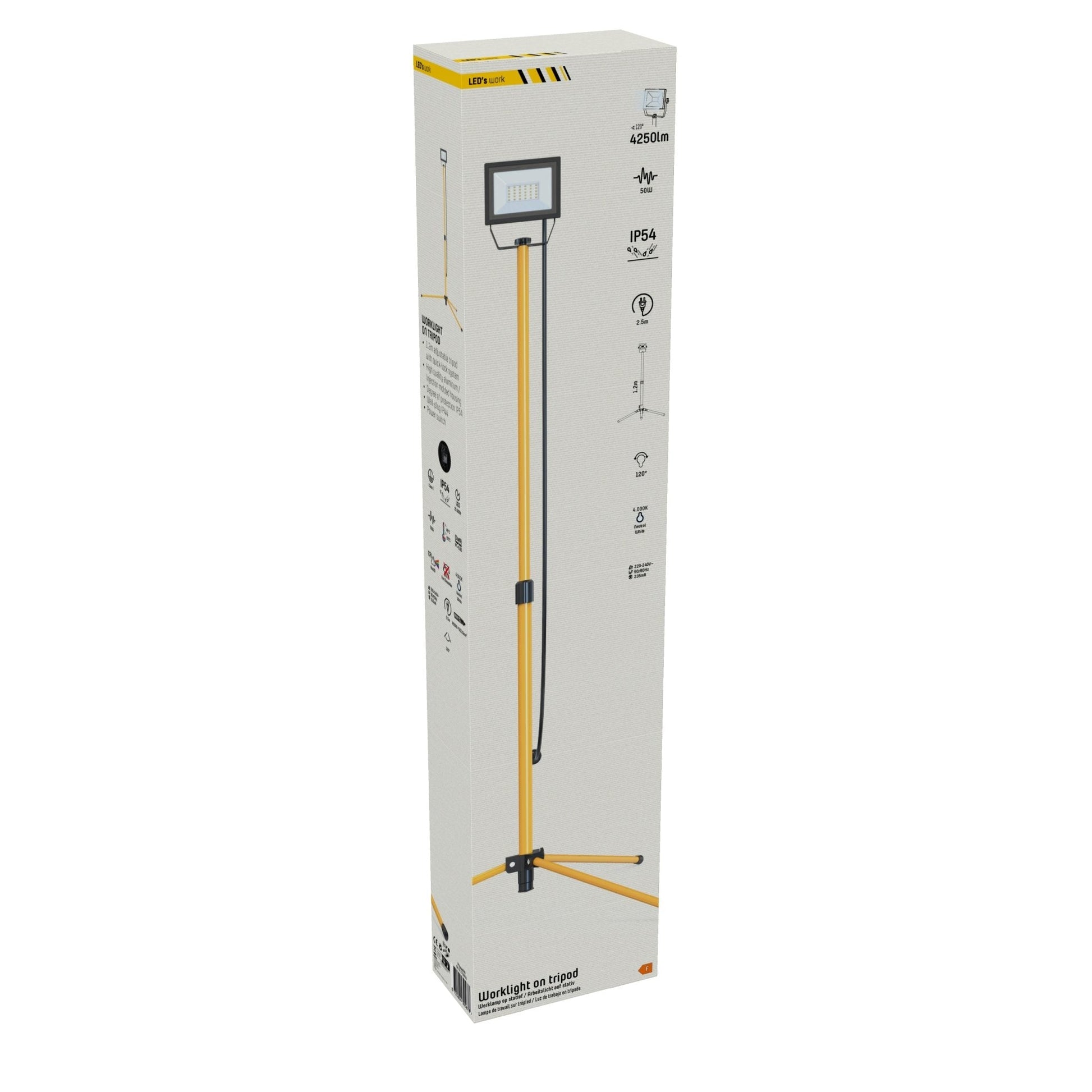 LED's Work 1 x 50W Tripod LED Bouwlamp op statief - In hoogte verstelbaar - 4250 lm