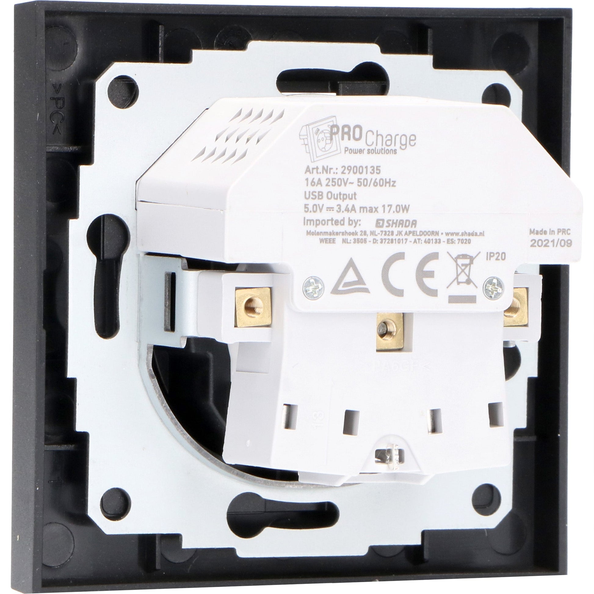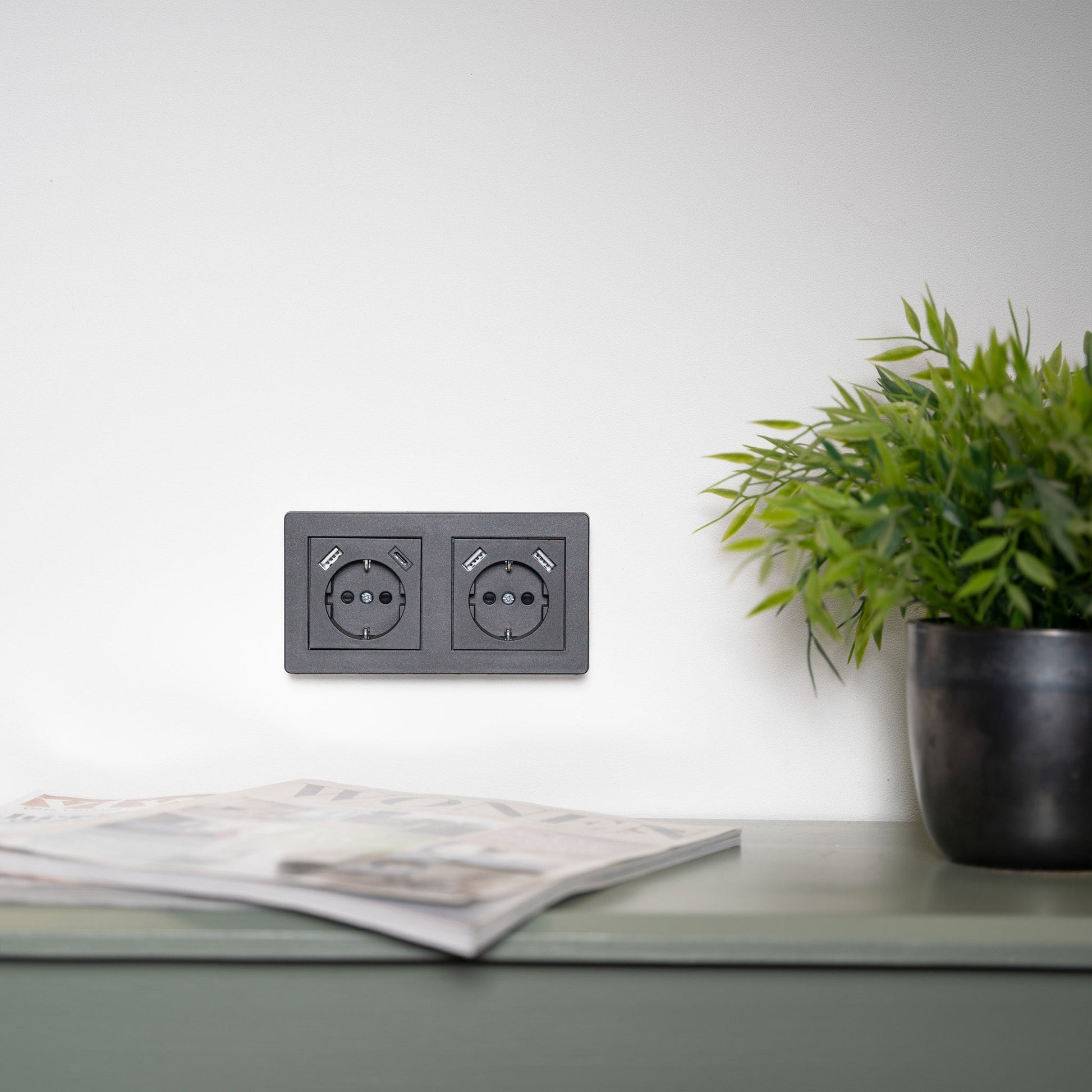 Reflex Inlegplaat voor wandcontactdoos met 2 USB - Zwart