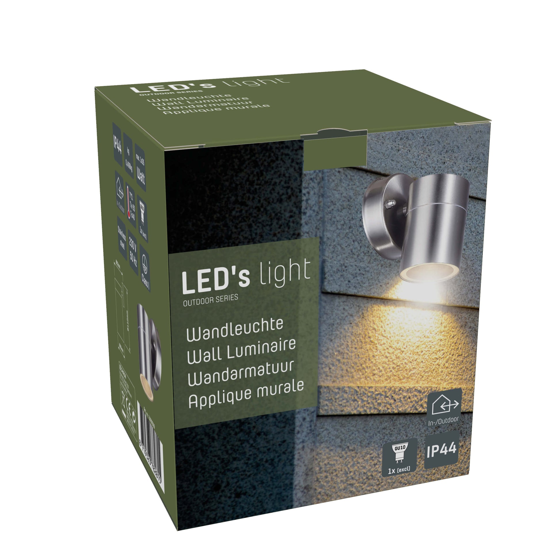 RVS LED Muurlamp Buiten - Spot met GU10 fitting - Model Monza - IP44 - Zilver