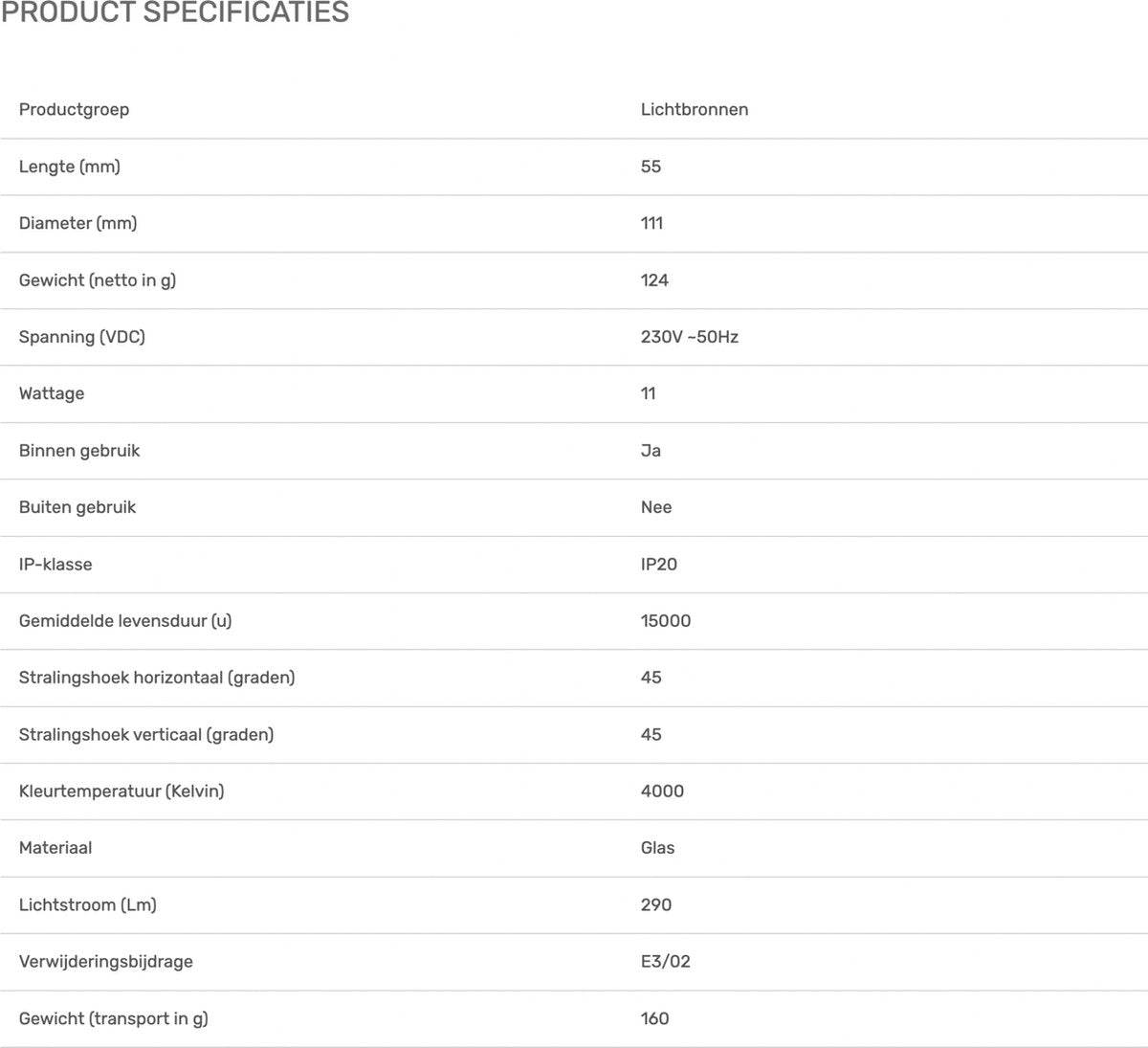 De Shoplight GX53 is een energiezuinige en milieuvriendelijke verlichtingsoplossing met een hoge lichtkwaliteit. Met een kleurtemperatuur van 4000K biedt deze lamp helder wit licht, waardoor het perfect is voor functionele toepassingen in diverse ruimtes.