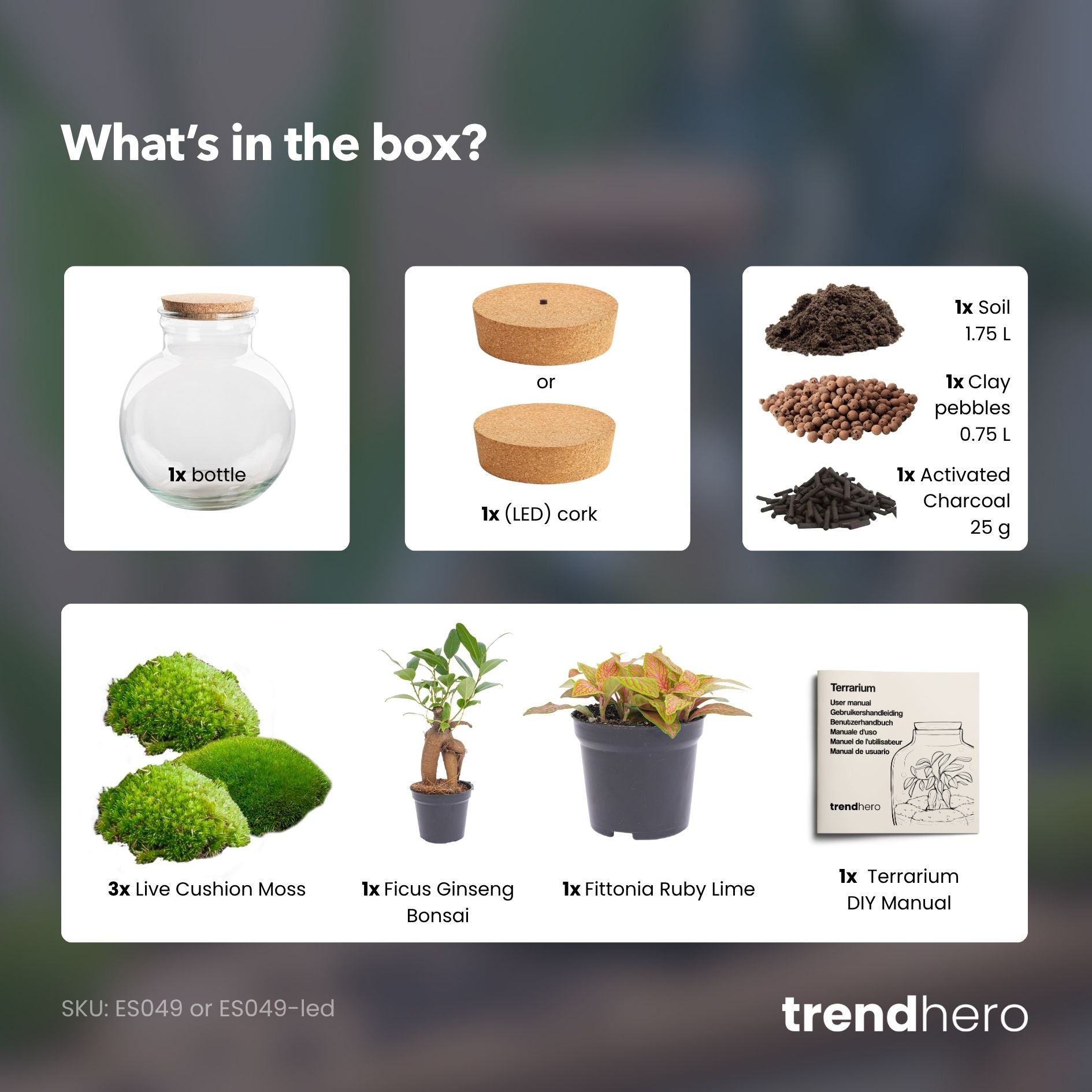 Teddy Bonsai - Terrarium with light - Bottle garden DIY kit - Ø 25 cm ↑ 26,5 cm