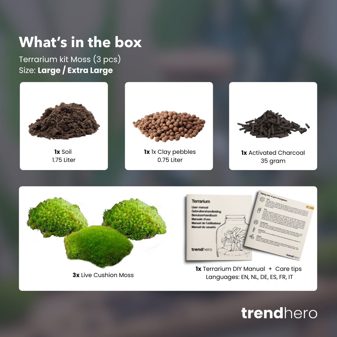 Terrarium Package – Refill & Starter Package – DIY Terrarium Kit – Size L/XL