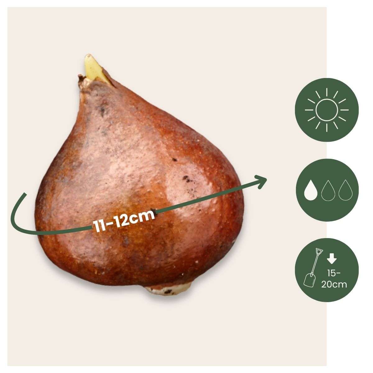 De bloembollen hebben een omtrek van ongeveer11/12 cm bij levering